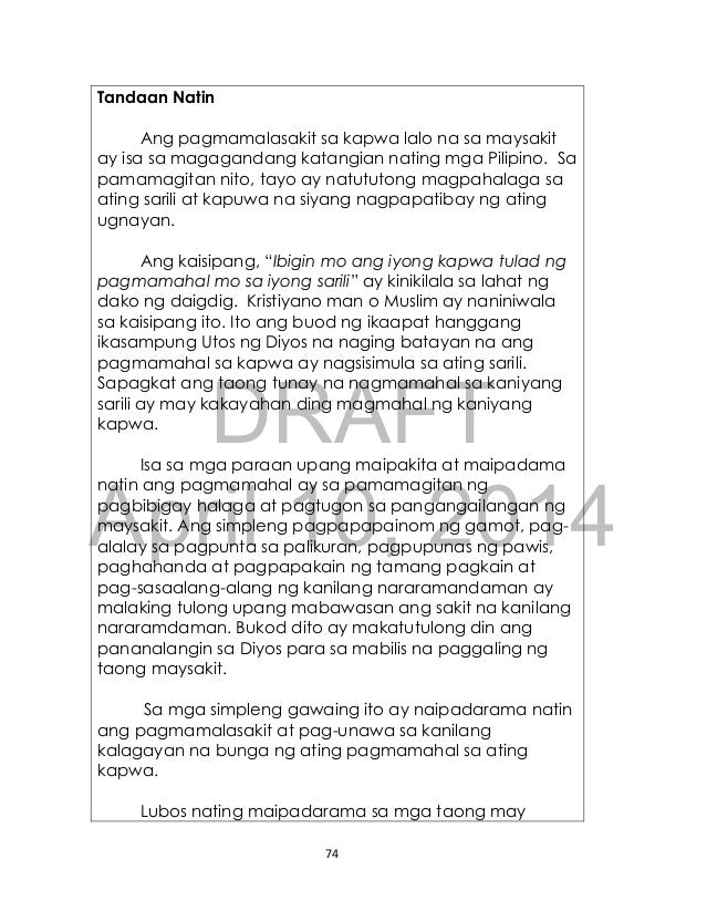 172020 Ang pagmamahal sa Diyos ay isa sa magandang gawain ng isang kristiyano kung minamahal natin ang ating kapwa ang ibig sabihin ay mahal din natin ang Diyos. 2072014 Ang pagkilala sa kadakilaan at kapangyariha ng Diyos ay pagkilala sa dignidad at kalikasan ng tao. Pagkalinga sa Pamilya at SalinlahiPanlipunan.
