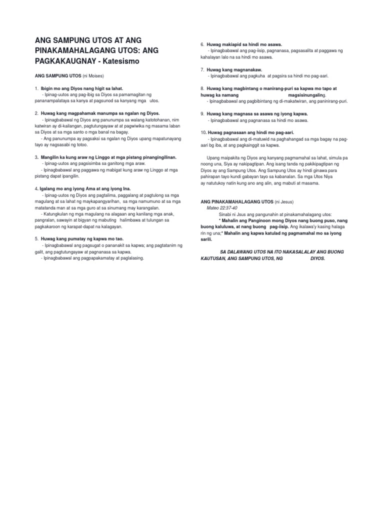 Ang Sampung Utos At Ang Pinakamahalagang Utos
