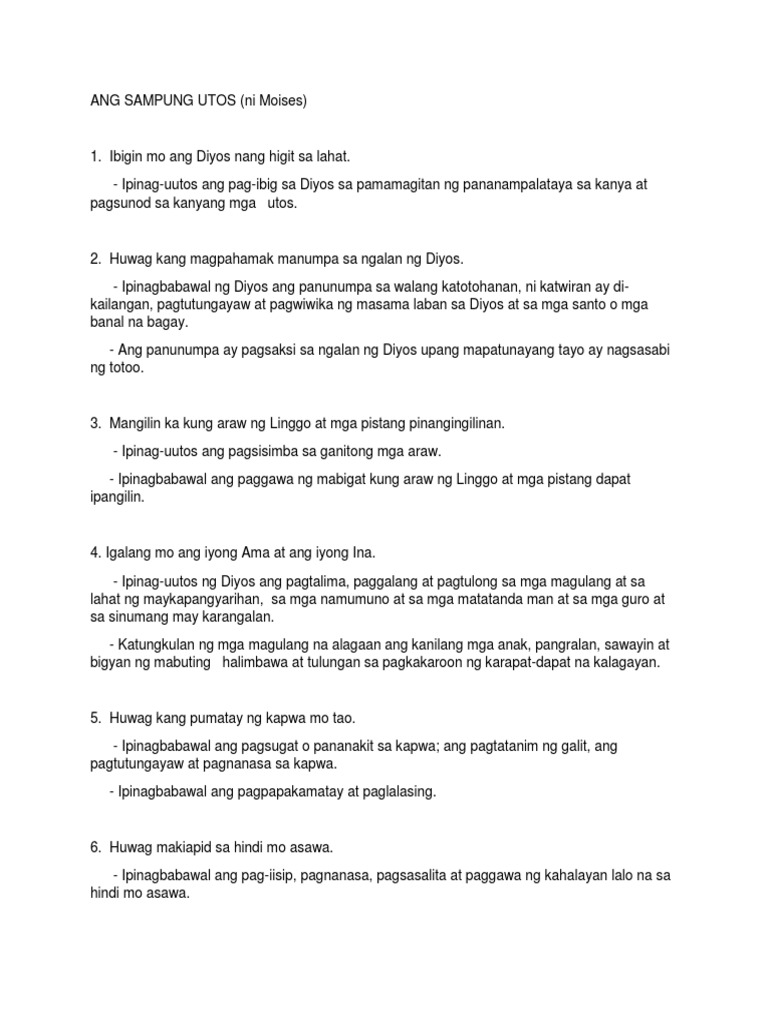 Halimbawa Ng Sampung Utos Ng Diyos
