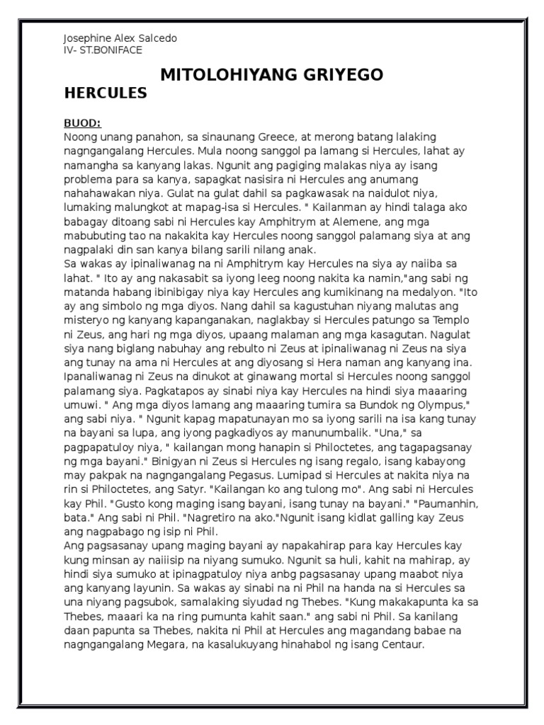 12012017 Makalipas ang mga araw ay unti-unting nagkakaisda sa kanilang isla at ito ay ikinatuwa ng mga mangingisda at mga tiga isla muling nagpasalamat ang buong tiga isla at lagi na silang gumagawa ng isang ritwal ng pasasalamat para sa diyosa at nagpapasalamat sila sa pagbigay ng pangalawang pagkakataon na binigay ng diyosa. An Mitolohiyang Griyego iyo an kadamotan kan mga mito asin katokdoan kan mga soanoy na Griyego manongod kan saindang mga diyos-diyos mga heroe an katalagahan kan kinaban asin an kapongalan asin kahulogan kan saindang mga kulto asin mga ritwal. Kasunod ng mga Griyego sa parehong Olympic diyos nagsimulang upang sumamba at ang mga Romano ang mga Griyego na pinagtibay mula sa maraming kultural na mga elemento.