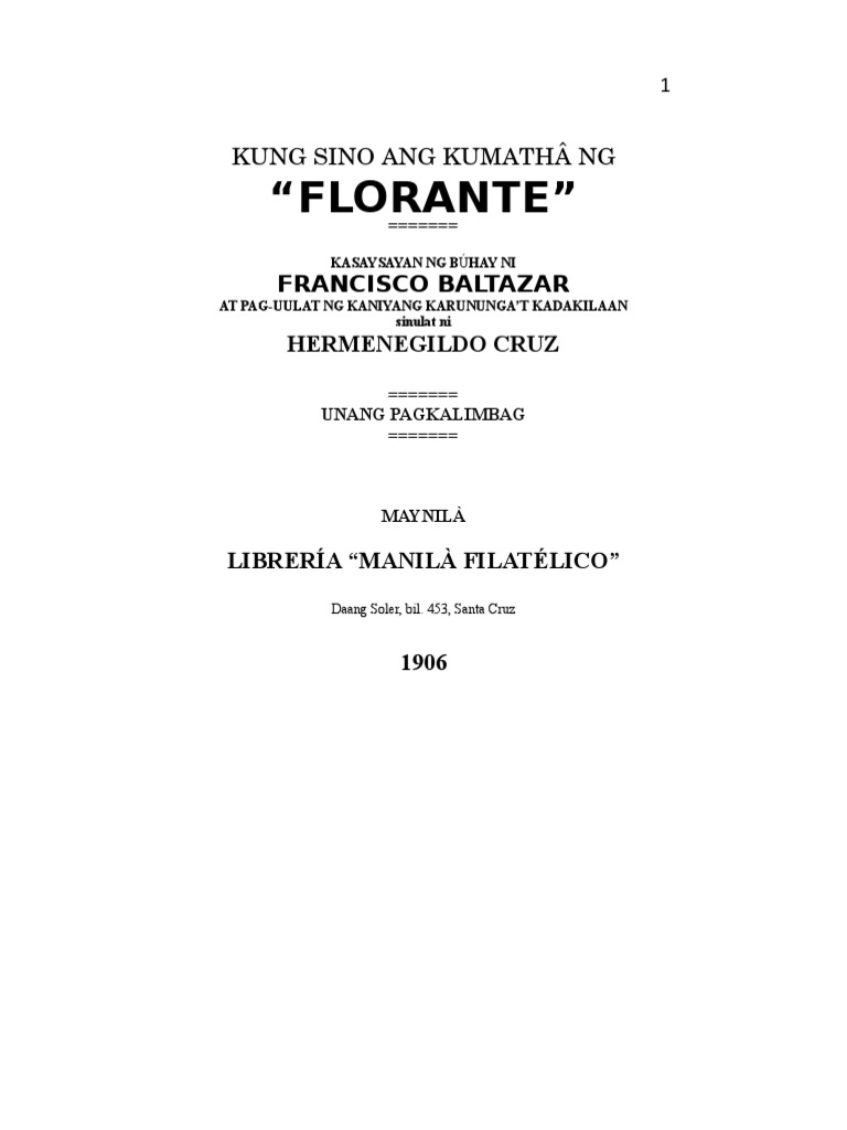 Kung Sino Ang Kumatha Ng Florante At Laura Edited 10062013 Doc