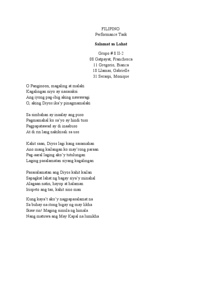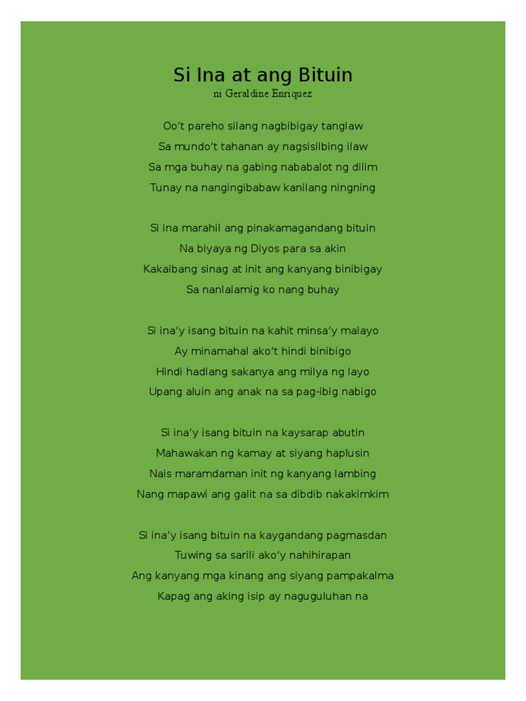 Ng may tapang at lakas. Akoy hindi makasulat at ang nanay nakabantay Asahan mo katoto ko hindi ka pa minamahal. Walang maliw ka naming mamahalin.