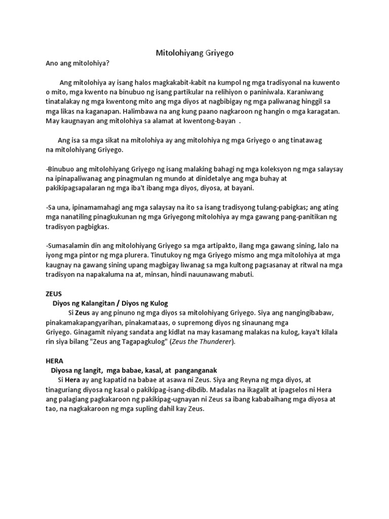 Ang Mga Kwentong Mitolohiya tungkol sa Diyos at Diyosa sa Pilipinas o Mga Diyos at Diyosa ng mga Ninunong Pilipino 2. Fishing Mga Kwentong Mito Ng Pilipinas. Ang isa sa mga sikat na mitolohiya ay ang mitolohiya ng mga Griyego o ang tinatawag na mitolohiyang Griyego.