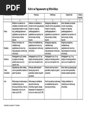 Rubric Sa Pagwawasto Ng Mitolohiya